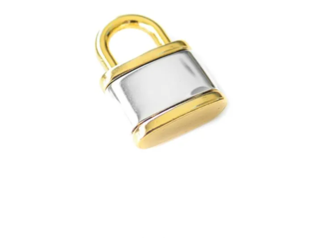 Pingente cadeado bicolor banhos ródio branco e ouro 18K