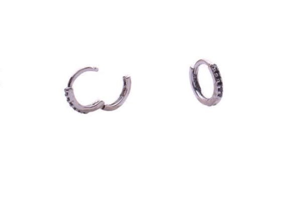 Brincos argolinha fina PPP cravejada com zircônias negras