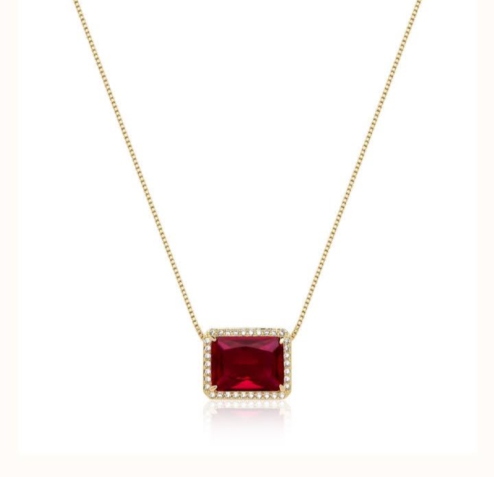Colar com pingente retangular cristal rubi cravejado de zircônias cristal