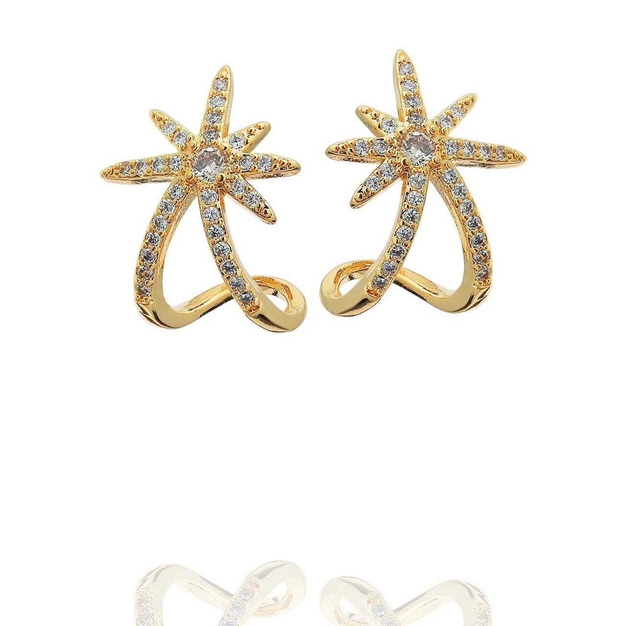 Brincos ear cuff estrelas cravejadas com zircônias cristal