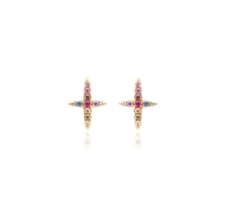 Brincos pino estrela P quatro pontas cravejada com zircônias color