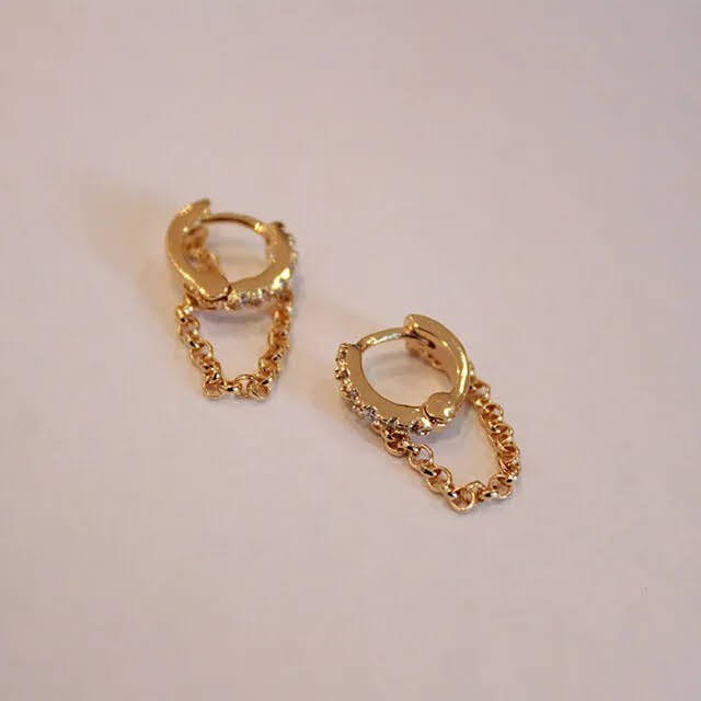 Brincos argolinha cravejada de zircônia cristal com corrente lateral