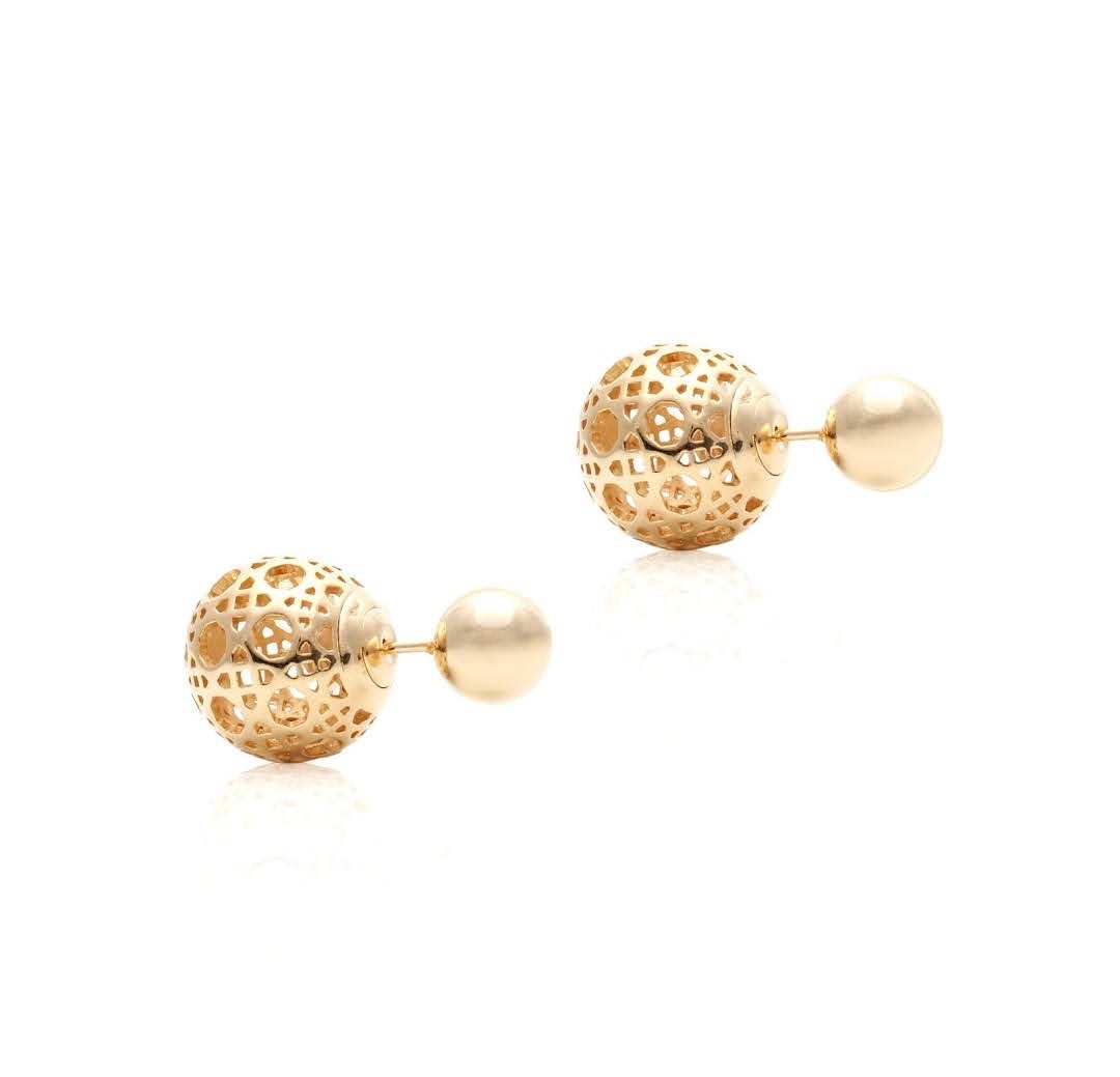 Brincos ear jacket duas bolas, uma lisa P e uma rendada M