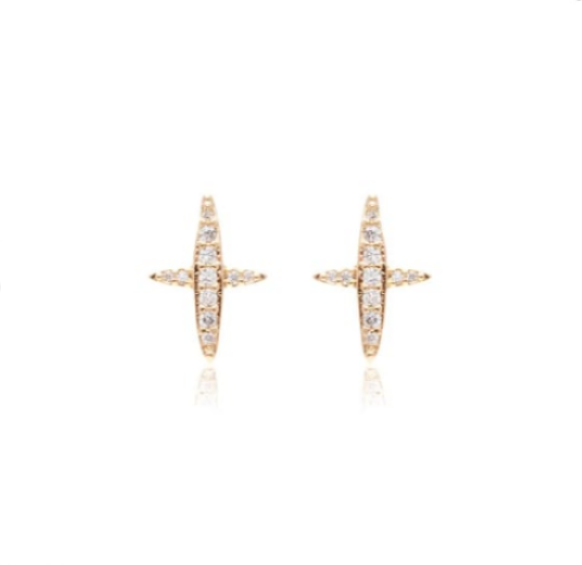 Brincos pino estrela P quatro pontas cravejada com zircônias cristal