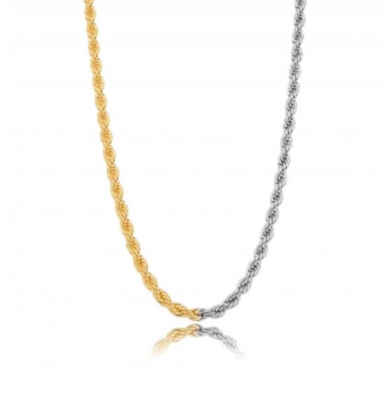 Colar cordão baiano bicolor com banhos de ouro18K e ródio Branco