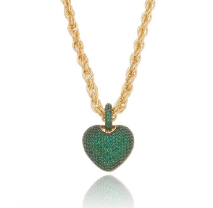 Colar cordão baiano com pingente coração cravejado de zircônias esmeralda