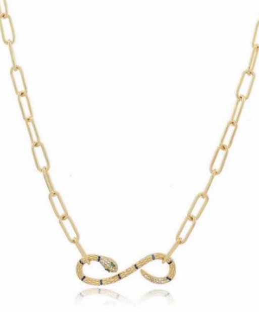 Colar elos e serpente cravejada com zircônias cristal e color.