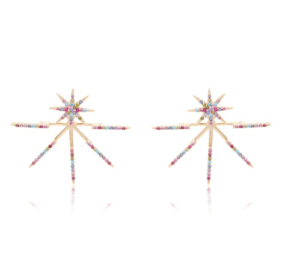 Brincos ear jacket de estrela 8 pontas cravejadas com zircônias color