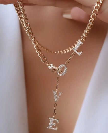 Colar corrente com pingentes cravejados com zircônias cristal