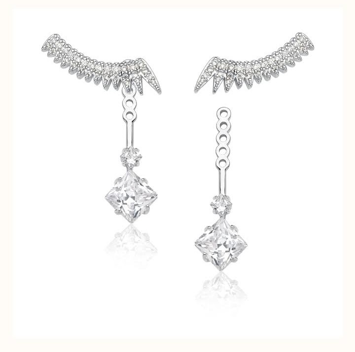 Brincos ear jacket com pingente de zircônias cristal