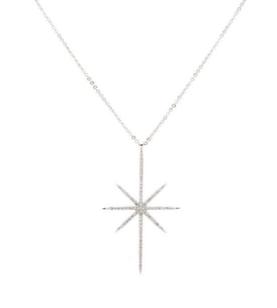 Colar com pingente de estrela 8 pontas cravejada com zircônias cristal