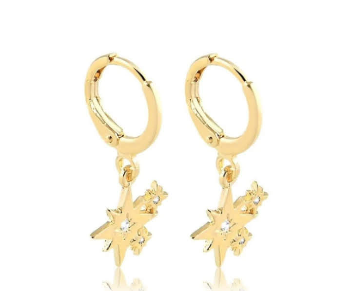 Brincos argolinha com pingente três estrelas com ponto de zircônia cristal
