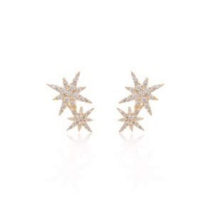 Brincos ear cuff com duas estrelas cravejadas com zircônias cristal